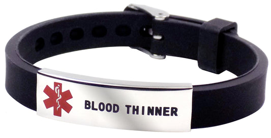 "BLOOD THINNER" Medical Alert ID Silicone Bracelet Wristbands 5 PackRegular price $12.95 USDRegular priceUnit price / per$14.95 USDSale price $12.95 USDSale