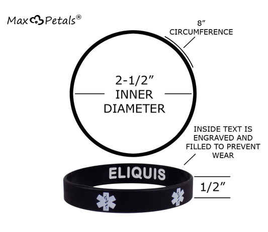 ELIQUIS Medical Alert ID Silicone Bracelet Wristbands 4 PackRegular price $11.95 USDRegular priceUnit price / per$14.95 USDSale price $11.95 USDSale