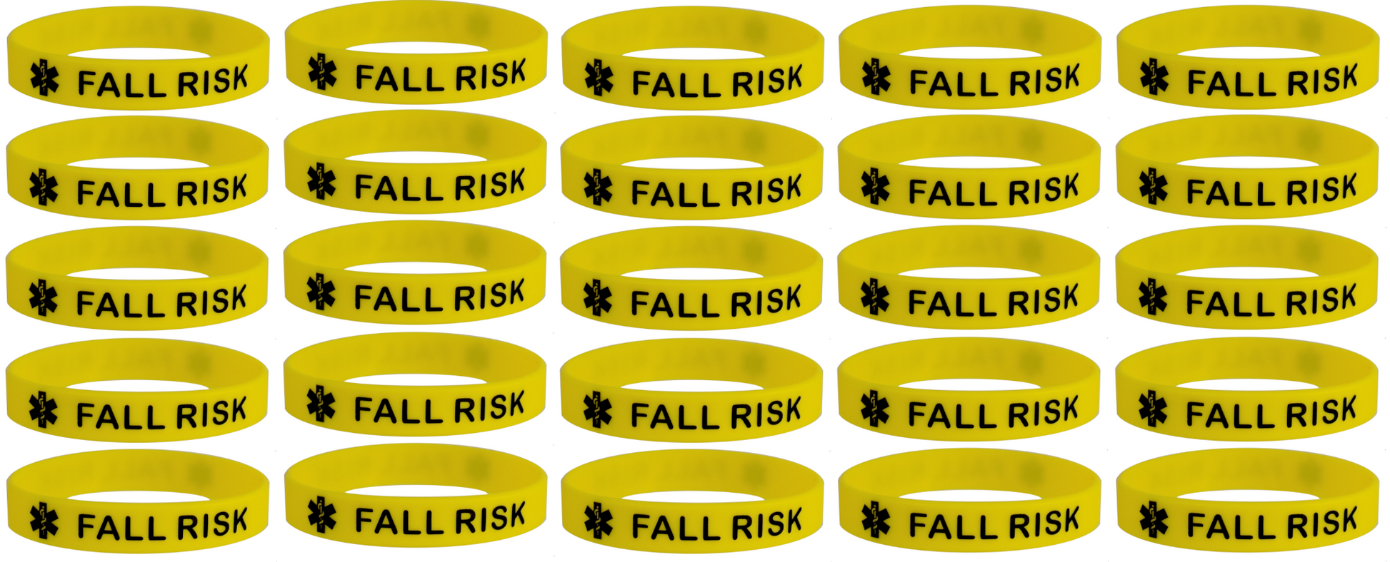 FALL RISK Medical Alert ID Silicone Bracelet Wristbandsyellow 25 Pack